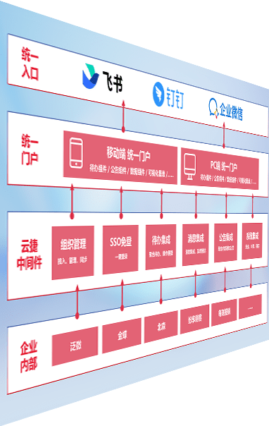 对协作平台提供支持服务,,支持企业应用与协作平台对接,,,,包含组织同步、、、、消息集成、、、、待办集成等。。。支持目前主流的协作平台:钉钉、、、、企微和飞书。。